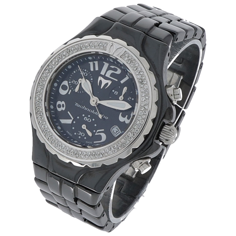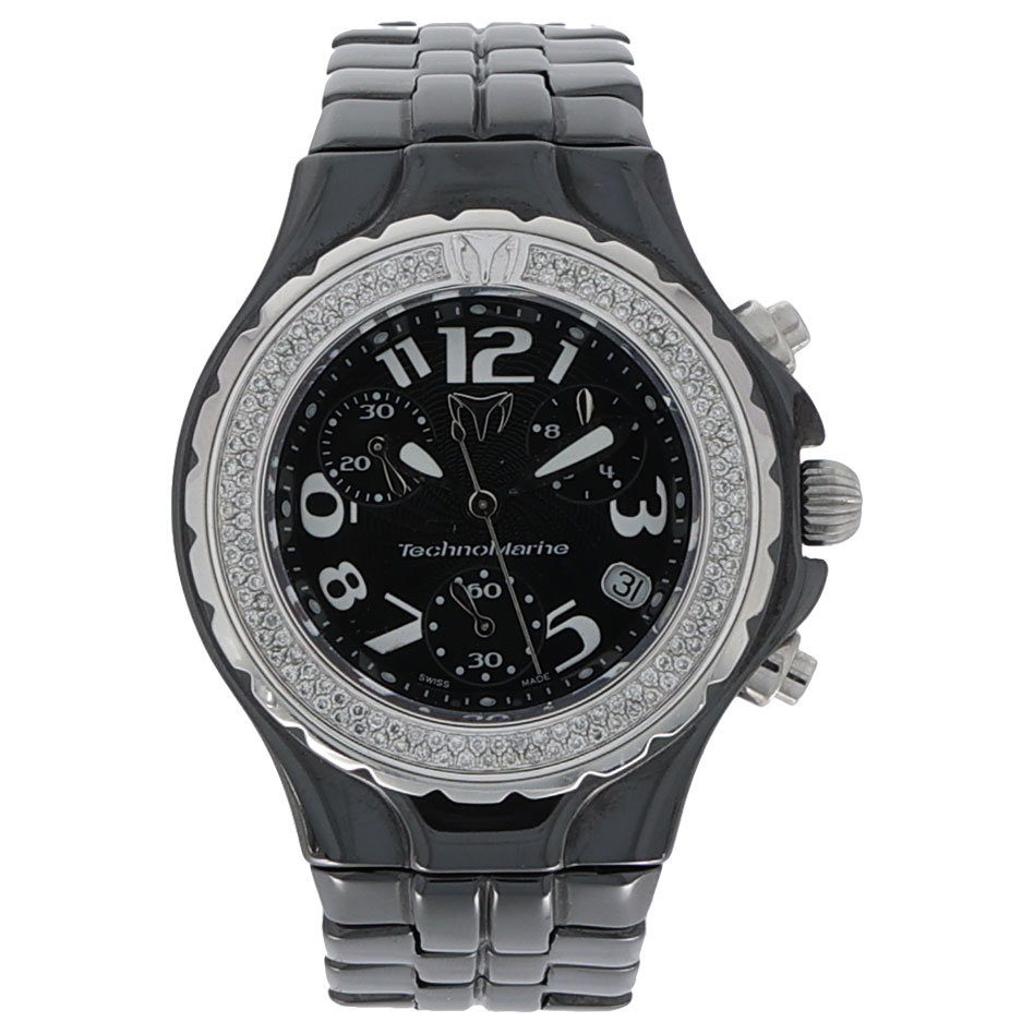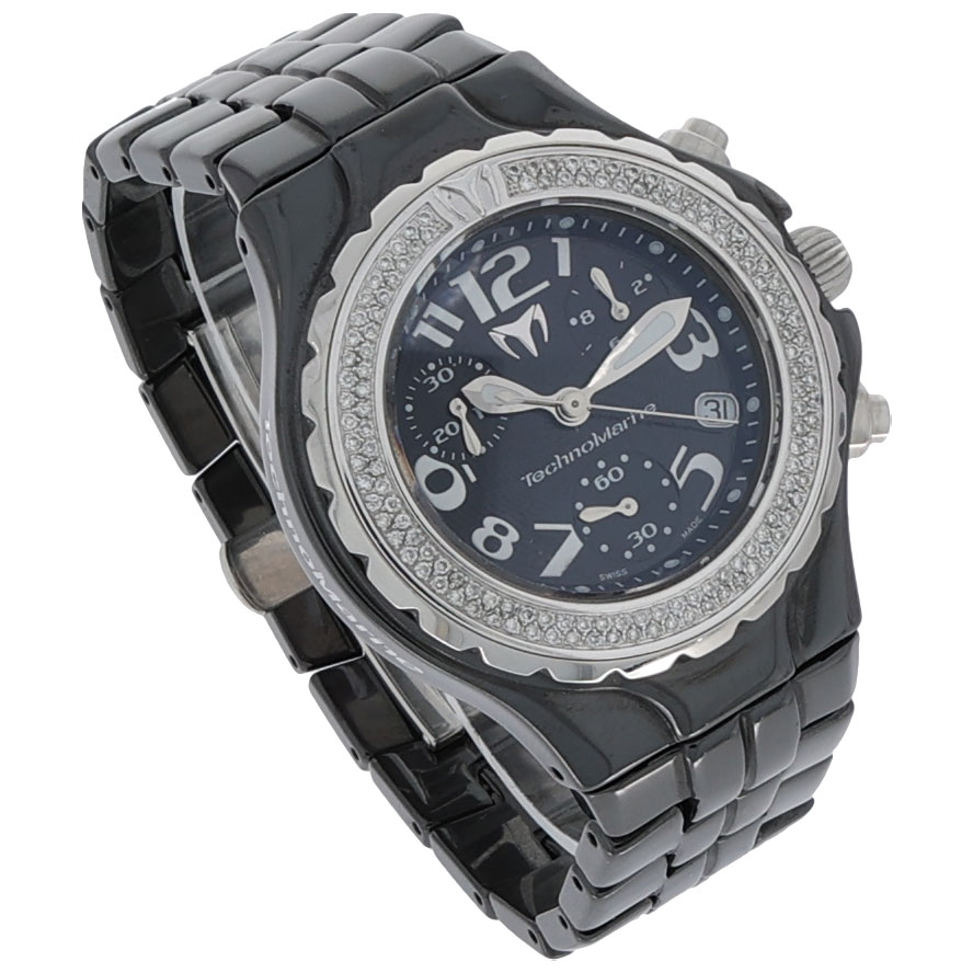 Der Technomarine TechnoDiamond Chronograph ist eine herausragende Uhr, die Eleganz und Leistung vereint. Mit ihrem Keramikgehäuse und dem markanten TechnoDiamond Design strahlt diese Uhr Luxus und zeitgemäße Ästhetik aus. Diese chronographische Uhr aus dem Jahr 2012 überzeugt nicht nur durch ihre präzise Quarzbewegung, sondern auch durch ihre auffällige Optik, die sie zu einem perfekten Accessoire für jeden Anlass macht.