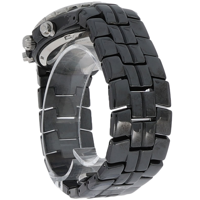 Die Kombination aus dem hochwertigen Keramikmaterial und den stilvollen Diamantakzenten sorgt für eine auffällige Eleganz, während der Chronographenmechanismus zusätzlich eine sportliche Note hinzufügt. Die Uhr eignet sich ideal für modebewusste Träger, die Wert auf Präzision und Design legen.